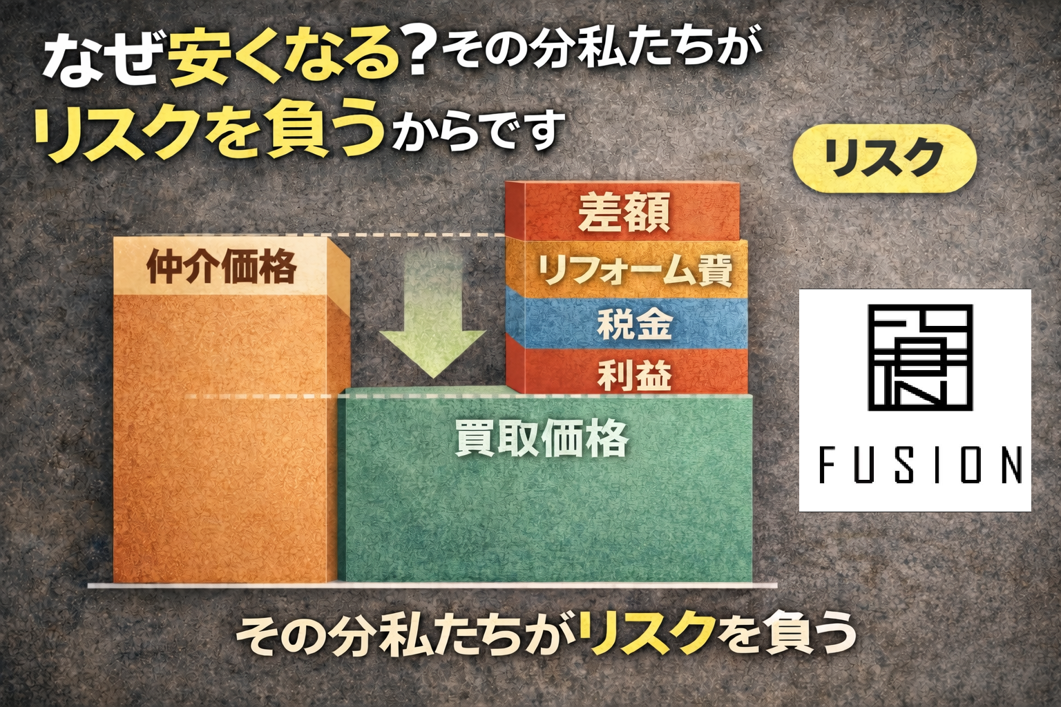 買取業者は、買い取った後に、数百万円かけてリフォームを行い、税金を払い、再度販売するための広告費をかけます。そして会社の利益も必要です。 これらの「経費」と「再販リスク」を差し引くため、どうしても仲介相場(そのままエンドユーザーに売る価格)よりは低くなります。 - それでも「買取」が選ばれる3つの理由