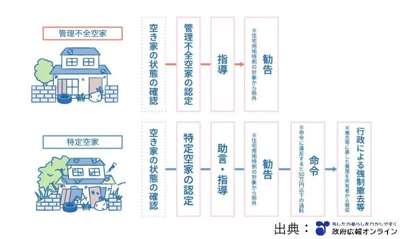 勧告(かんこく): 「特定空き家」に指定された状態。ここで固定資産税の住宅用地特例が解除され、税金が跳ね上がります。