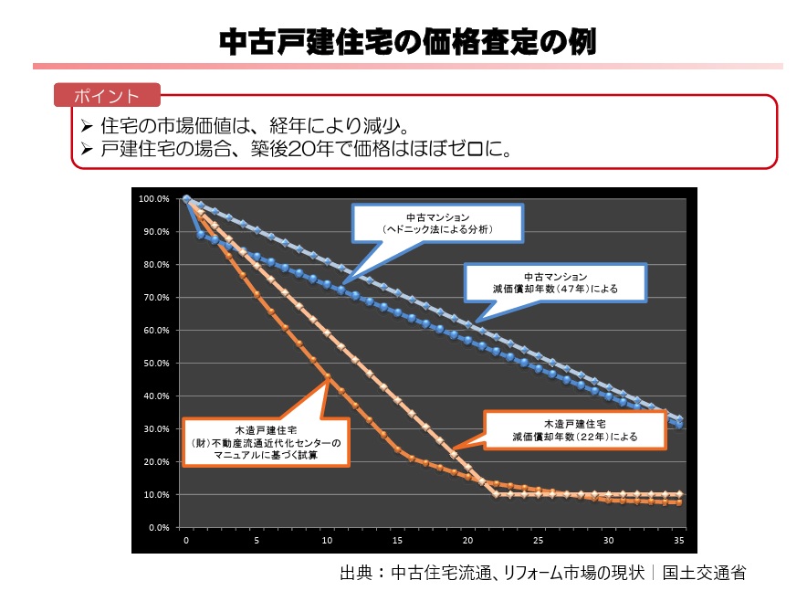 もし、その家が「将来、息子が住む予定がある」「3年後に高値で売れる見込みがある」なら、維持費は必要な投資です。 しかし、「使い道はないけど、なんとなく残している」状態なら、10年で200万円、固定資産税も含めれば300万円以上のお金を、ただ空き家に吸い取られることになります。 しかも、どんなに管理しても、築年数が経てば建物の価値(評価額)は下がっていきます。